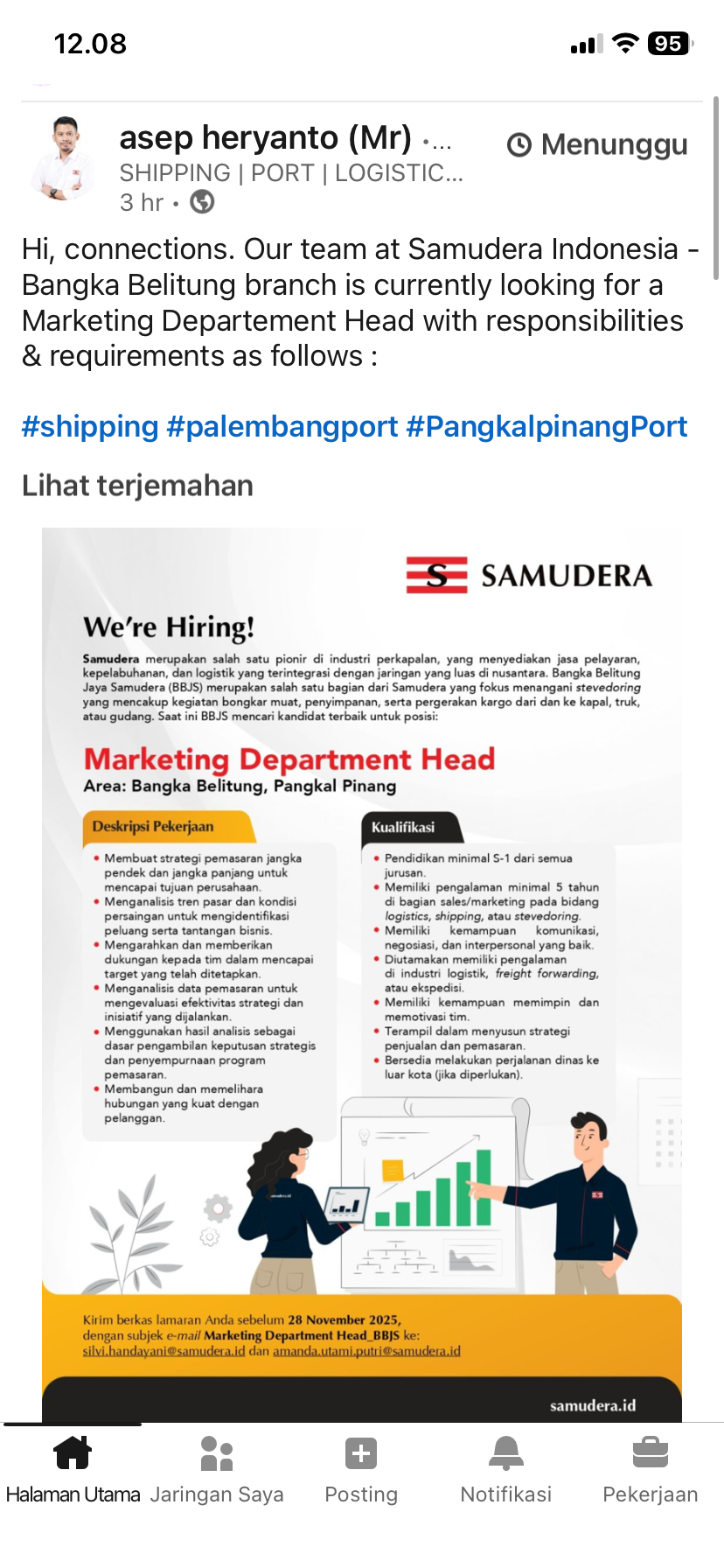 info Loker Marketing Departement Head-BANGKA BELITUNG JAYA SAMUDERA