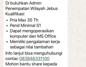 ADMIN GA,Lowongan dibuka sampai tanggal 11 Desember 2025